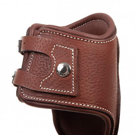 Made from the famous BUTET grained leather and featuring its iconic stud, this pair of fetlock boots with buckles and an anatomical cut reduces pressure points on the flexors. They are reinforced with calf-lined leather and will elegantly protect your horse’s limbs and provide them with absolute comfort. La Haute Sellerie, par excellence.
