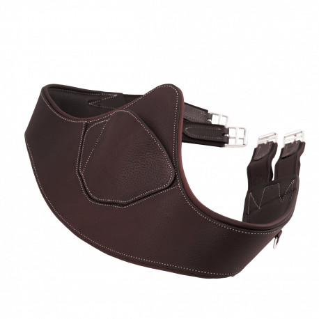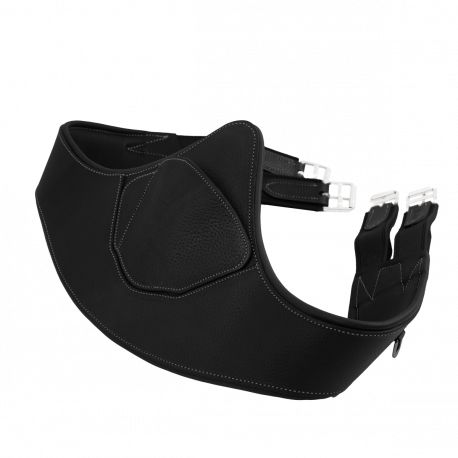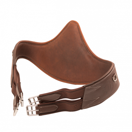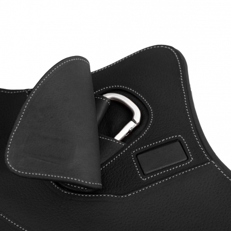 The BUTET embossed ergonomic training girth comes with a central snap hook and its magnetic snap hook cover, a D-ring and two elastic straps on either side. The ergonomic training girth is suitable for multi-disciplinary use.