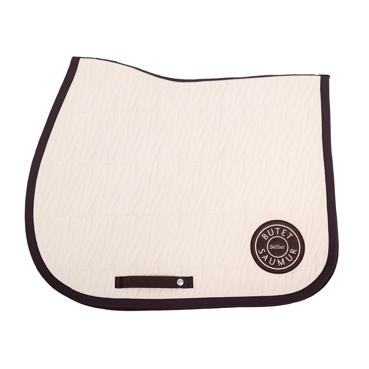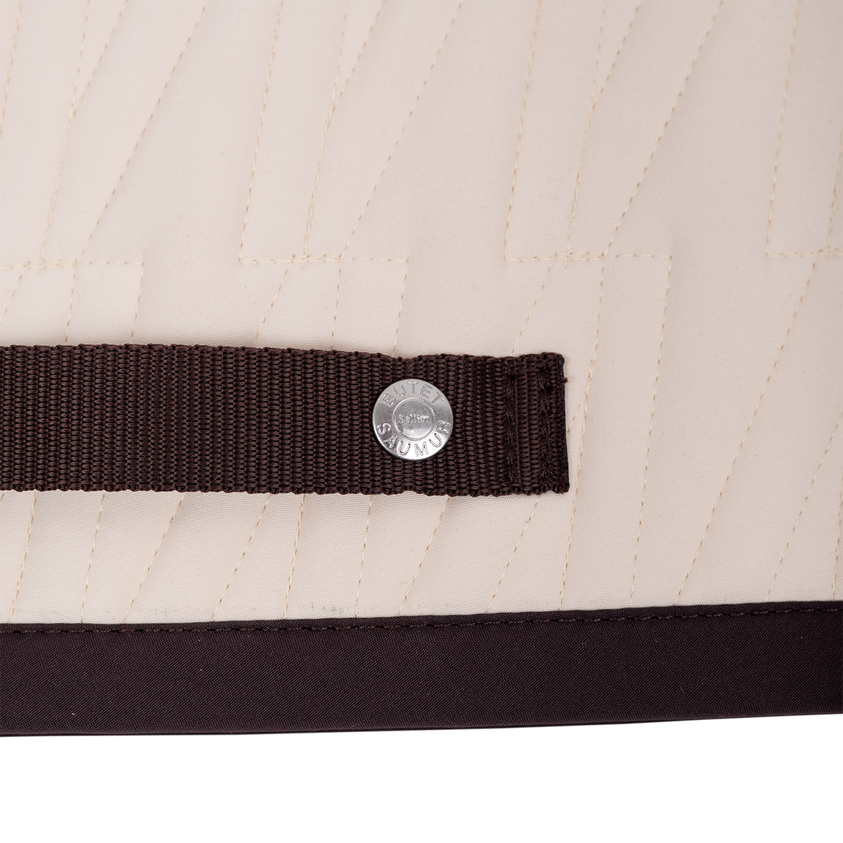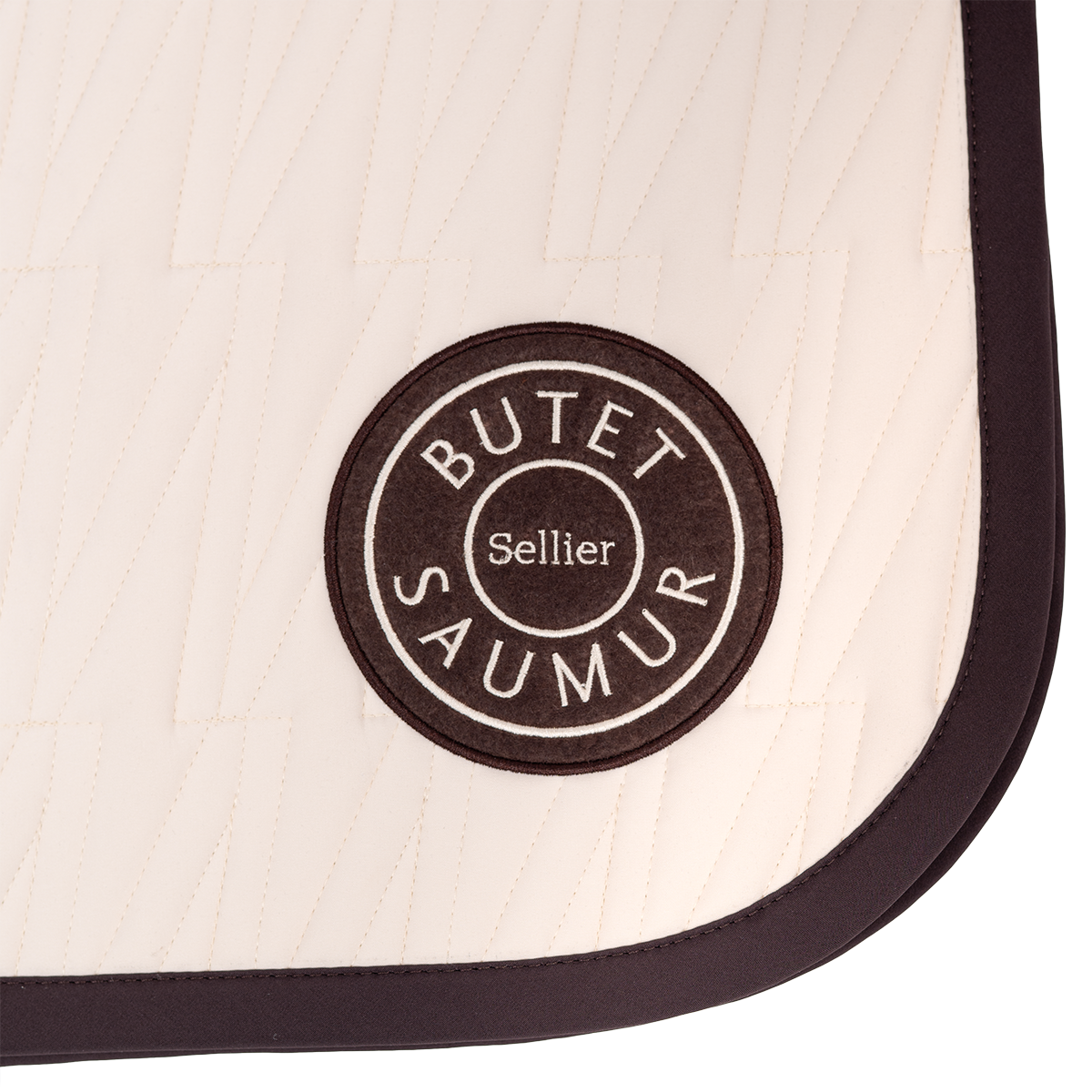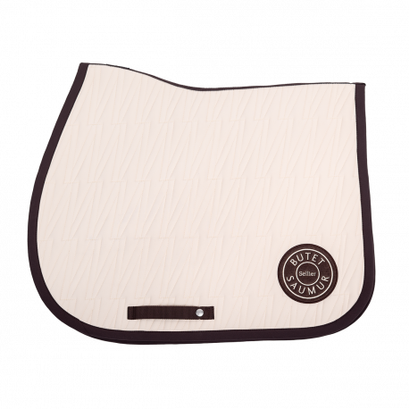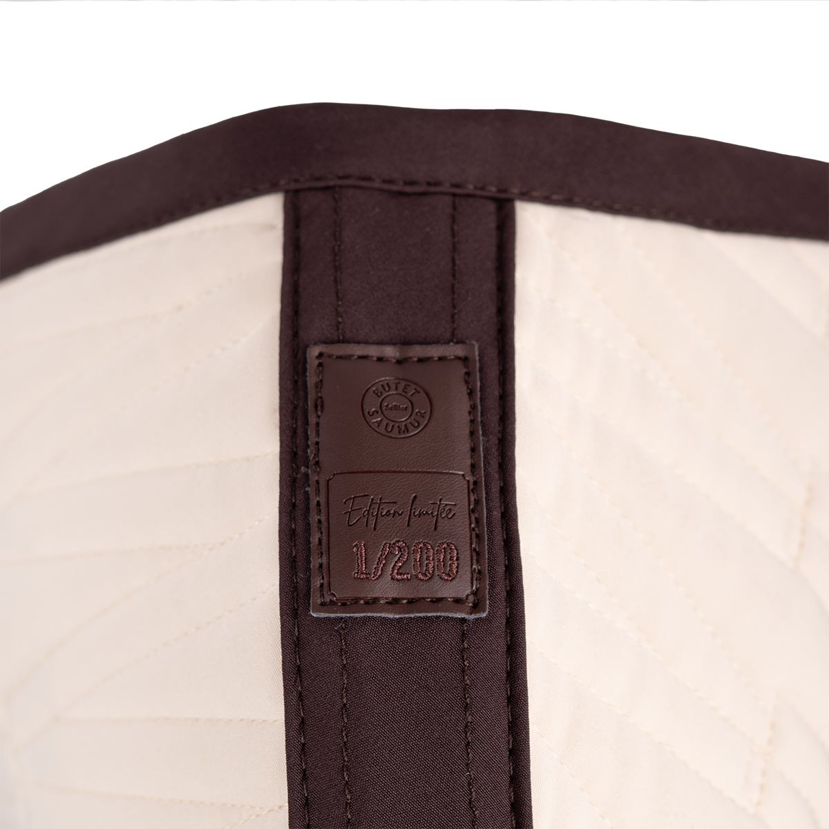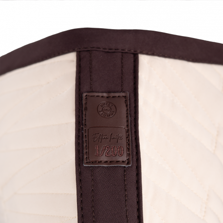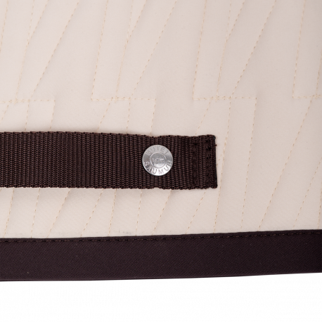 An exclusive beige and darkbown saddle pad, designed for comfort and elegance. Cut away at the withers to create space, it features the iconic V of the full calf saddle in monogram and is embellished with a saddle nail.