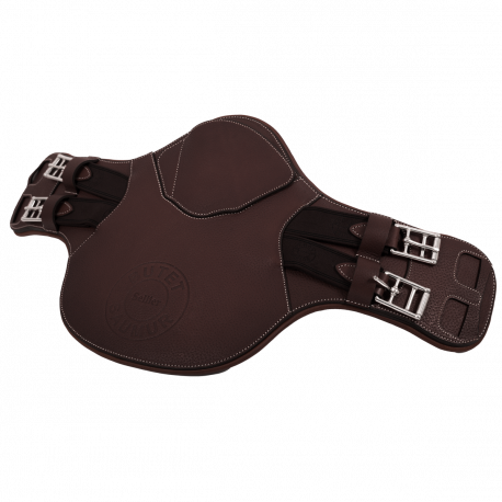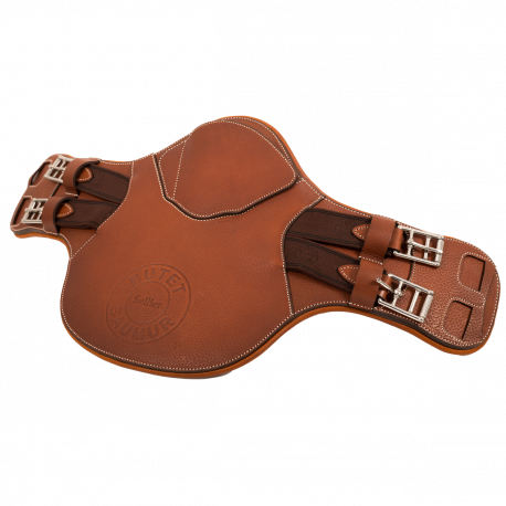 The BUTET embossed cross-country belly guard girth comes with a central snap hook and its magnetic snap hook cover and two elastic straps on either side. The cross-country belly guard girth is recommended for outdoor work and cross-country riding. Compatible with our mono-flap saddles.