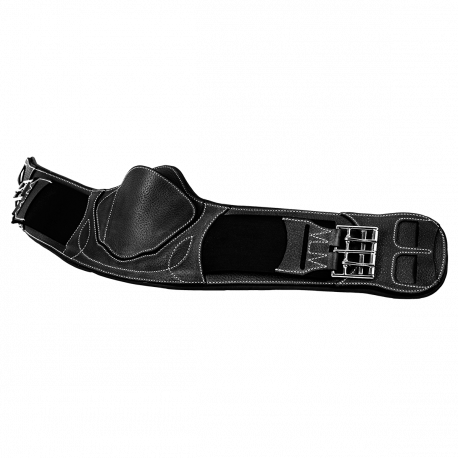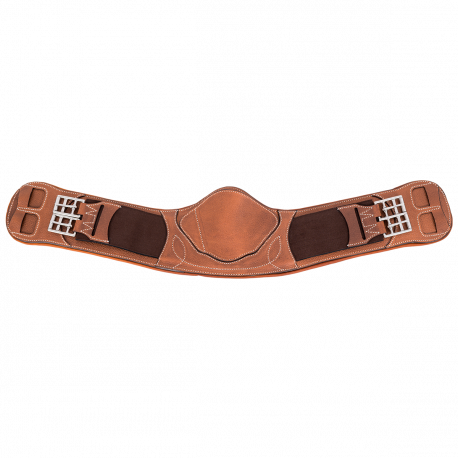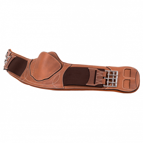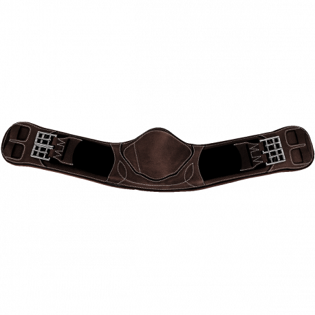 The Butet embossed curved comfort dressage girth comes with a central snap hook and four double roller buckles at the ends. The curved comfort dressage girth is compatible with our mono-flap saddles.