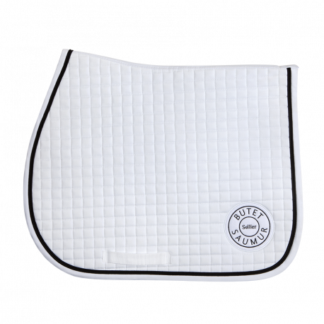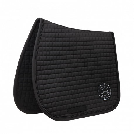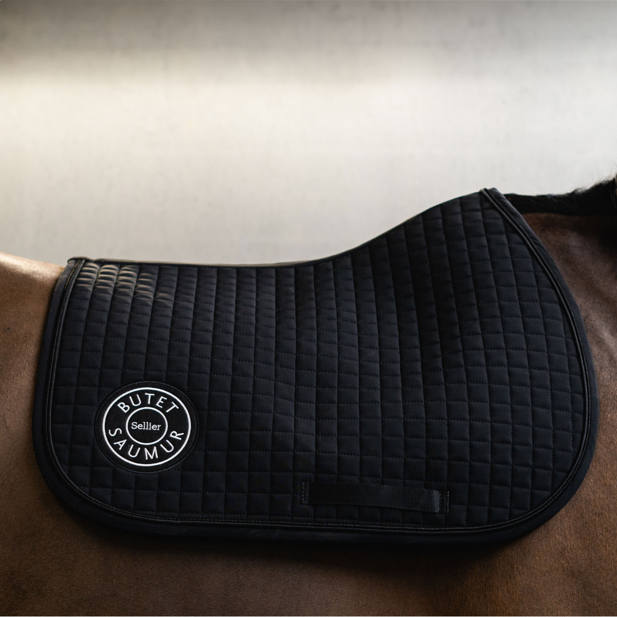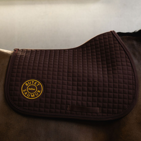 Le tapis de selle est orné d’une cordelette noire et brodé du célèbre logo BUTET.