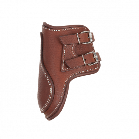 Fabriquée à partir du célèbre cuir grainé Butet et doté de son clou emblématique, cette paire de protège-boulets à boucles à la découpe anatomique limite les points de pression sur les fléchisseurs. Renforcé en cuir doublé veau, elle apportera protection, confort absolu et élégance aux membres de votre cheval. La Haute Sellerie par excellence.