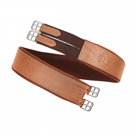 La sangle asymétrique estampillée BUTET est équipée d’un anneau central et de deux élastiques sur l’une des extrémités.
