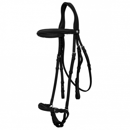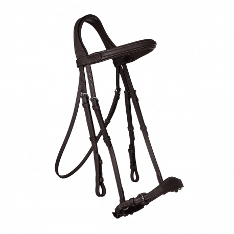 Le Bridon muserolle allemande offre un confort optimal à votre cheval grâce à ses matelassures au niveau de la muserolle, du frontal et de la tétière. Grâce à cette muserolle gardait le contrôle de votre cheval.
