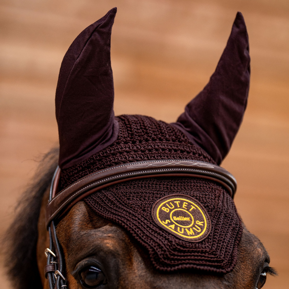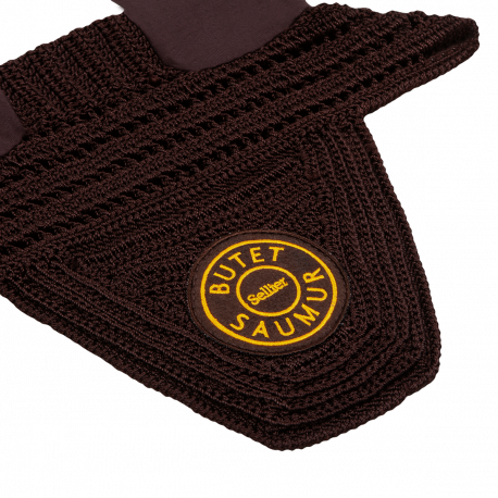 Le Bonnet noir ou marron tissé BUTET épousant parfaitement la tête du cheval.